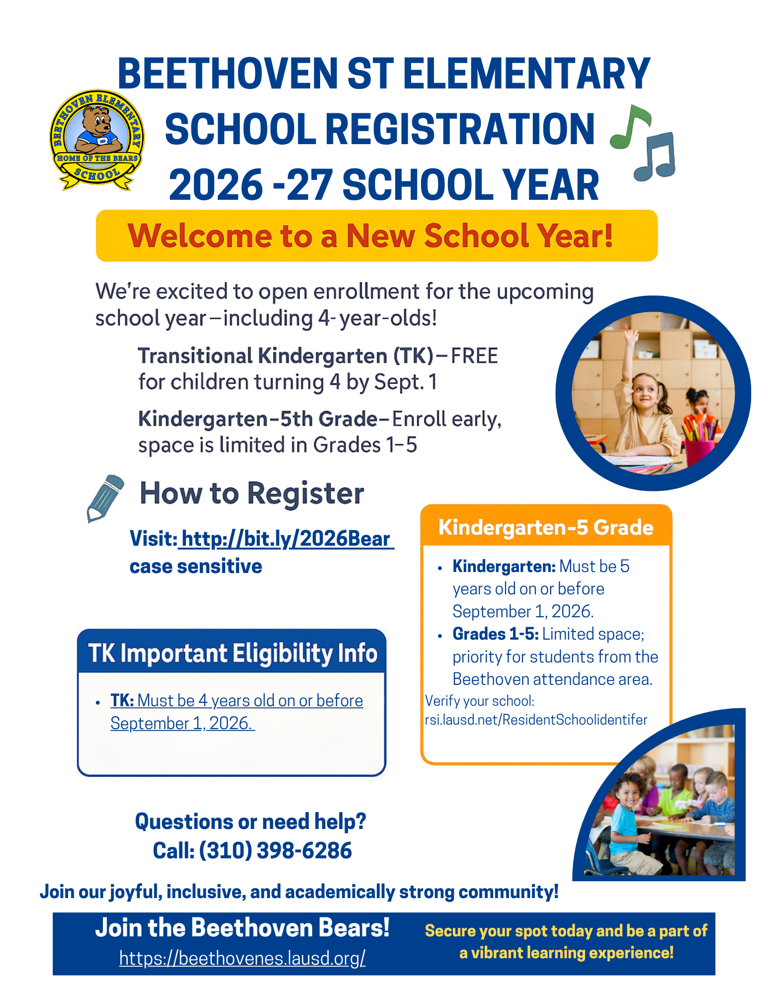 - Grades 1-5: Limited space; priority for students from the Beethoven attendance area.